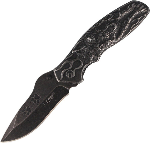 • Zavírací nůž od německé firmy Herbertz Solingen. Nůž je vyroben z oceli AISI 420 s motivem vlka na stěnách.